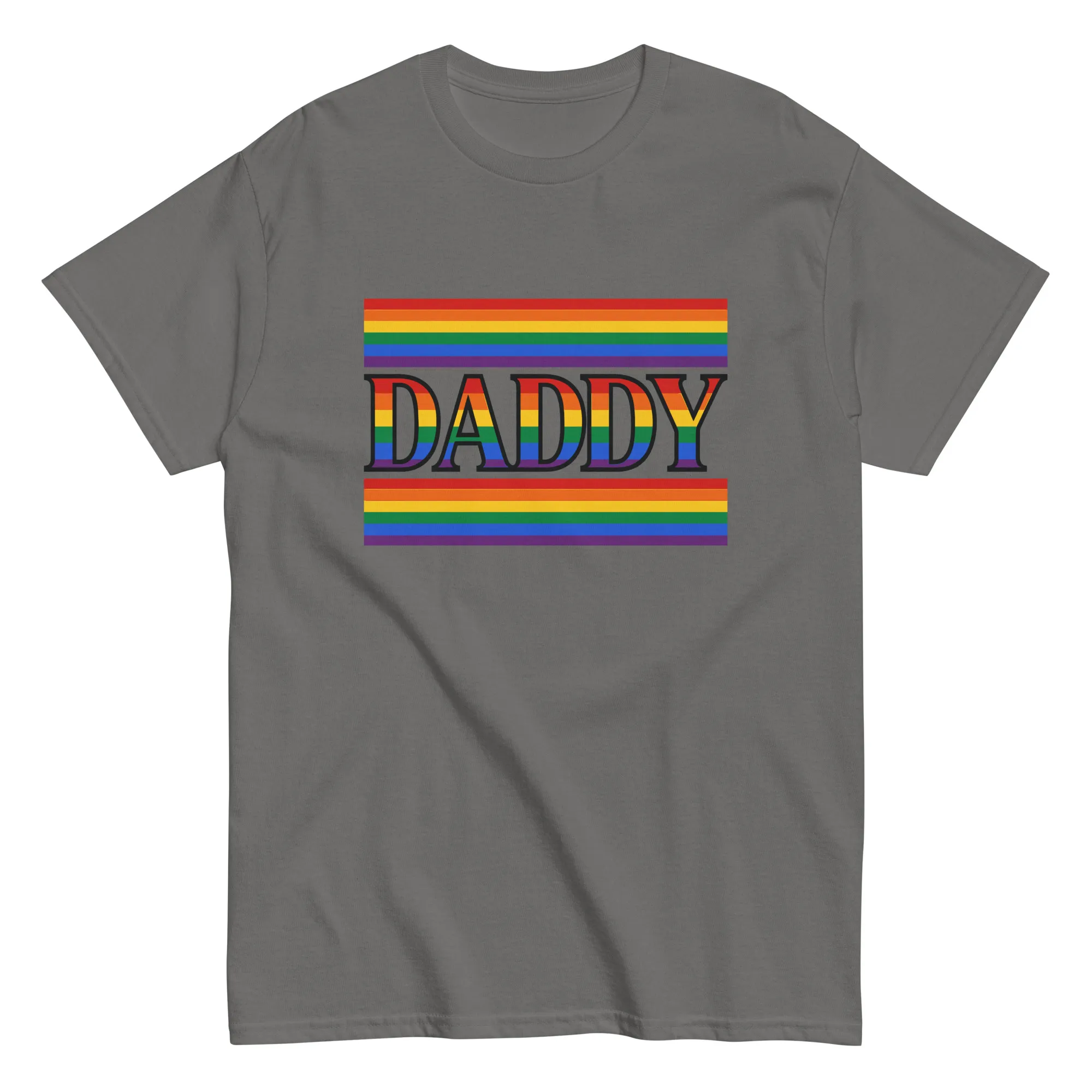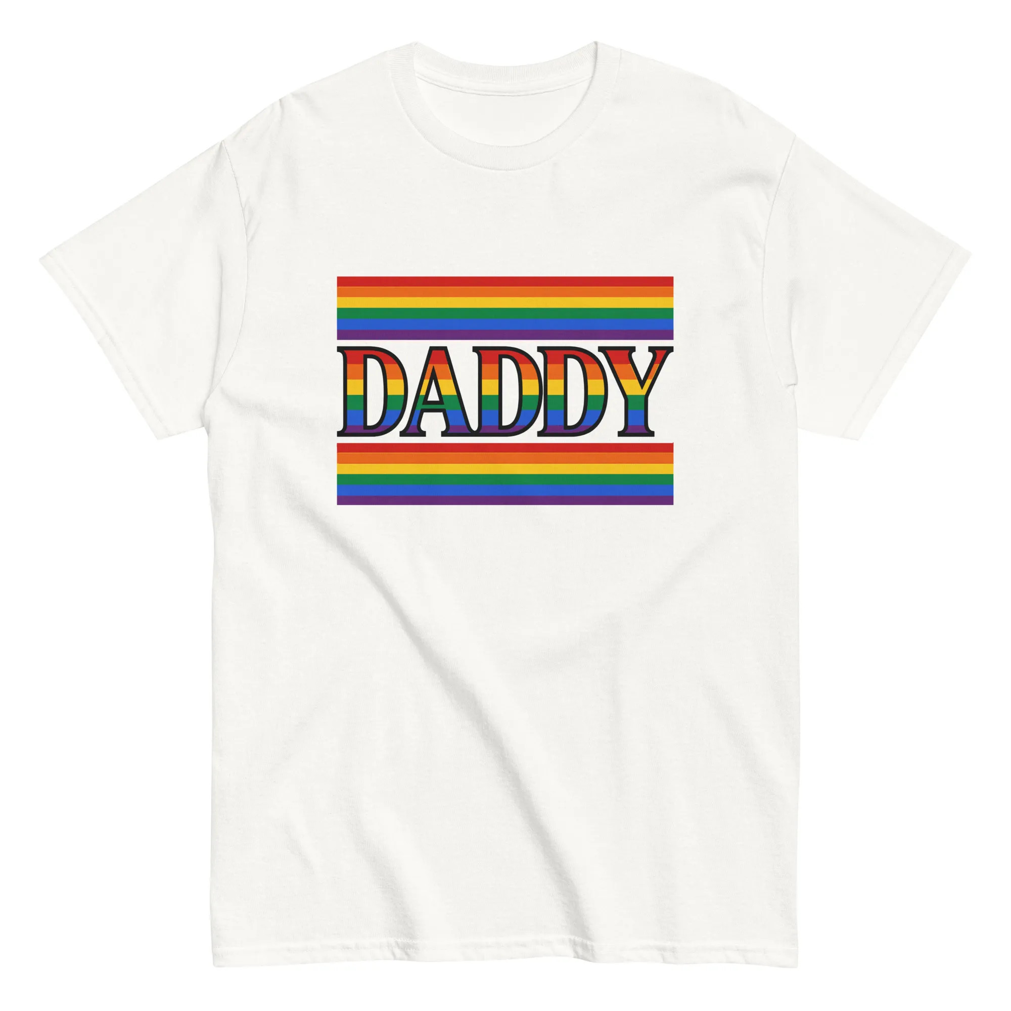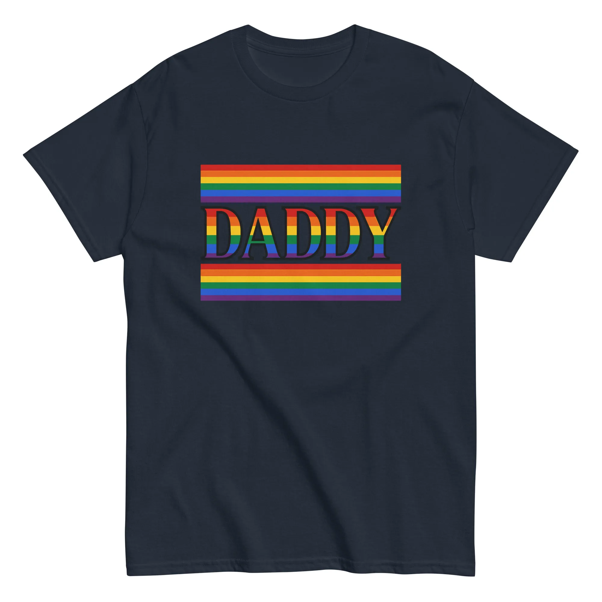 This isn’t just another shirt, it’s a statement. Bold rainbow stripes wrap the word Daddy in unapologetic pride, making it clear who’s running the show (and probably the grill). Whether he’s walking in a parade, rocking the weekend, or just reminding everyone that “Dad jokes” come with a side of swagger, this tee does the talking for him. Built for comfort, confidence, and the kind of presence that can’t be muted.