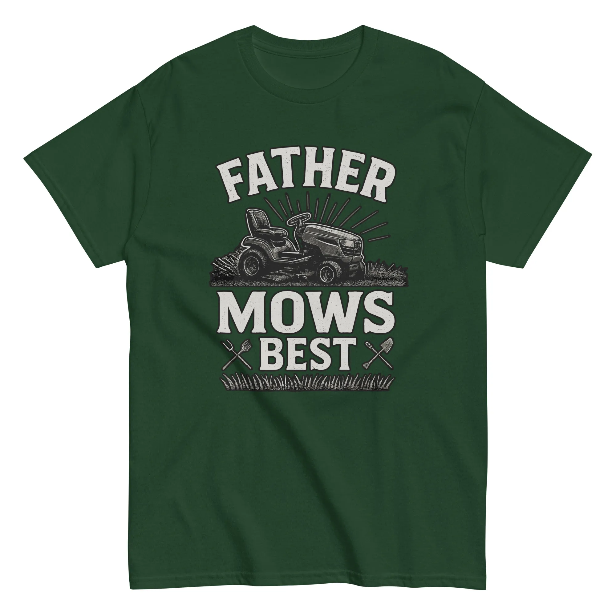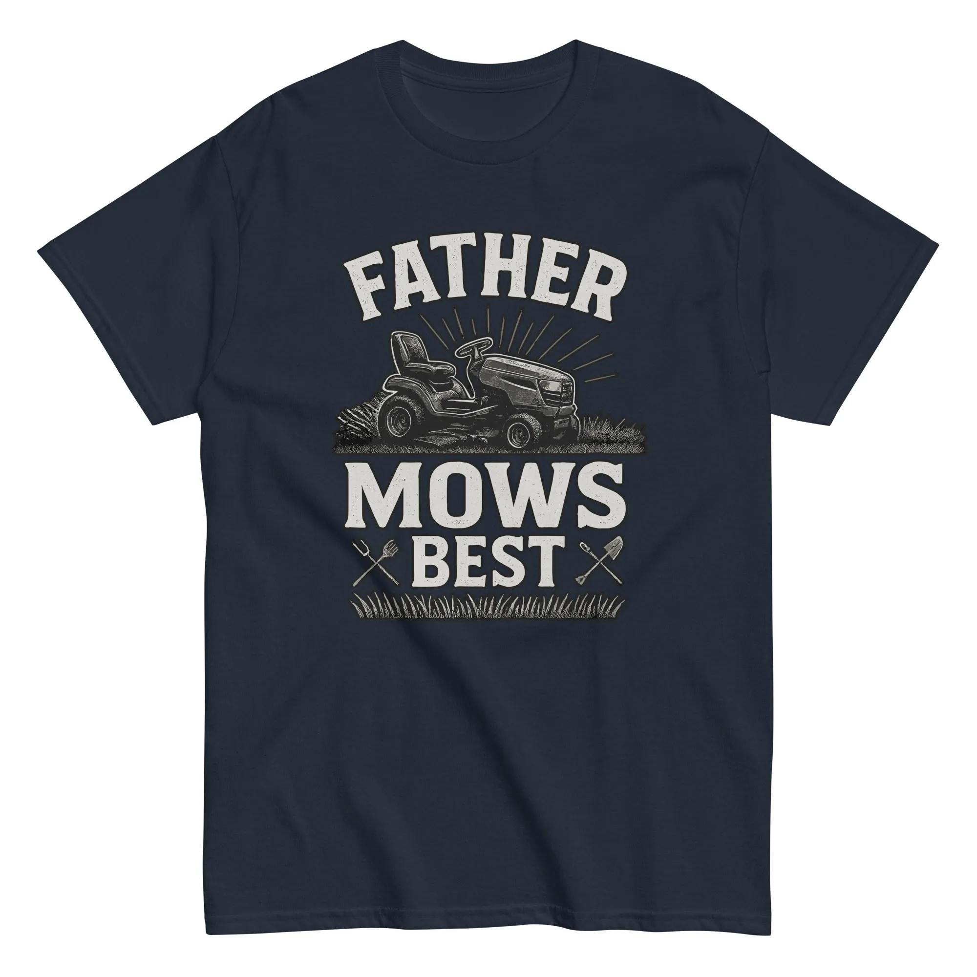 Your neighbors know it. Your family knows it. The lawn bows to your command. This Father Mows Best shirt is a salute to the dads who turn Saturday mornings into symphonies of straight lines and perfectly trimmed edges. Built from soft, rugged cotton, its perfect for mowing, mulching, or sitting on the porch admiring your masterpiece with a cold one. Limited dropget it before your kid fires up the mower and ruins your pattern.