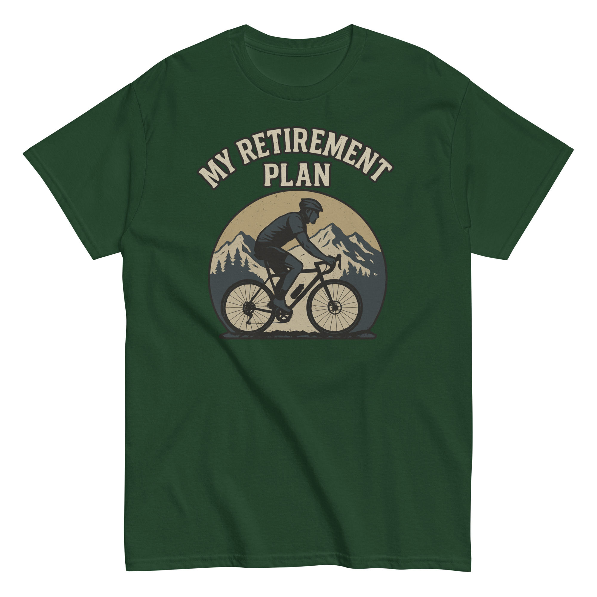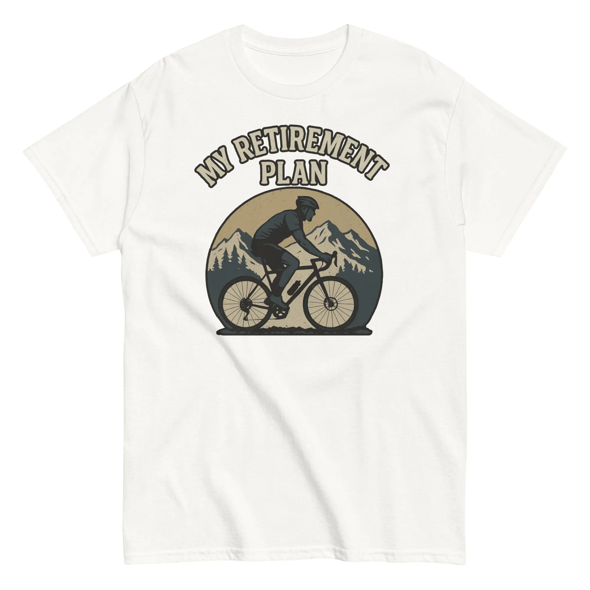 Some guys dream of golf courses and rocking chairs. You? You’re plotting mountain climbs, long rides, and a retirement filled with chain grease and bragging rights. This shirt is your declaration: the plan is simple, the road is open, and the legs are stubborn enough to keep pedaling. Made from soft, durable cotton, it works just as well for post-ride beers as it does for reminding your family that this is cheaper than therapy. Don’t wait—retirement goals sell fast, and so does this shirt.
