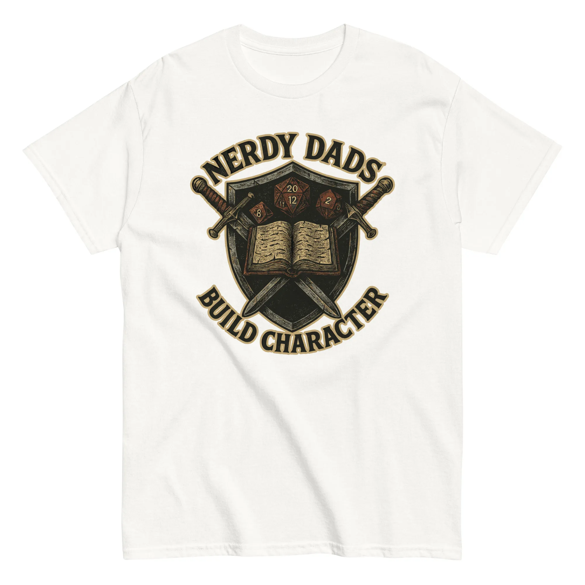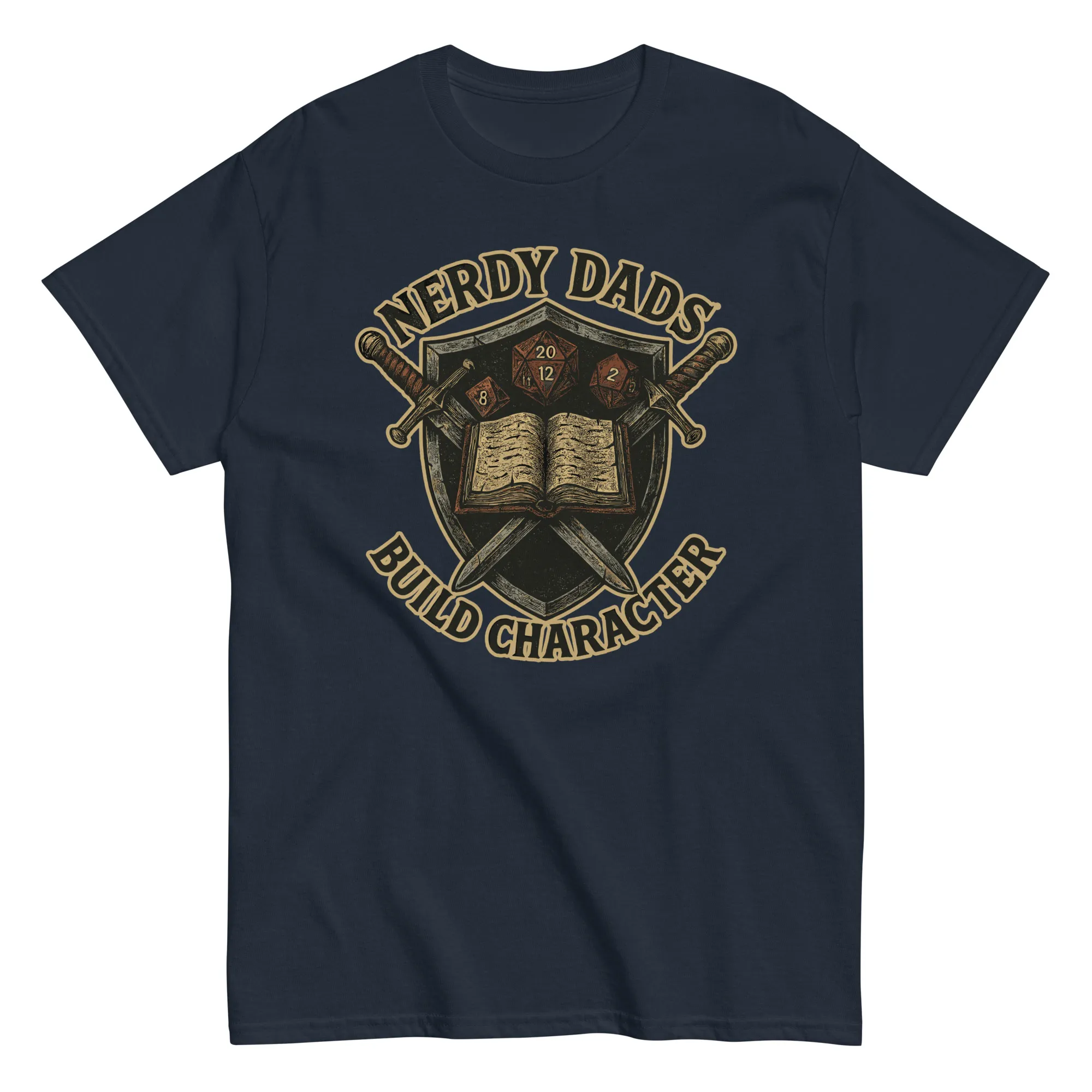 Some dads hand out lectures. You hand out character sheets. This shirt is your banner, stitched for the proud nerdy dad who knows a d20 teaches resilience, problem-solving, and why fireballs solve most problems. Comfortable enough for family game night, durable enough for backyard battles, it’s the official uniform of dads who raise heroes both at the table and in real life. Don’t wait—these shirts disappear faster than your kid’s patience during rule explanations.