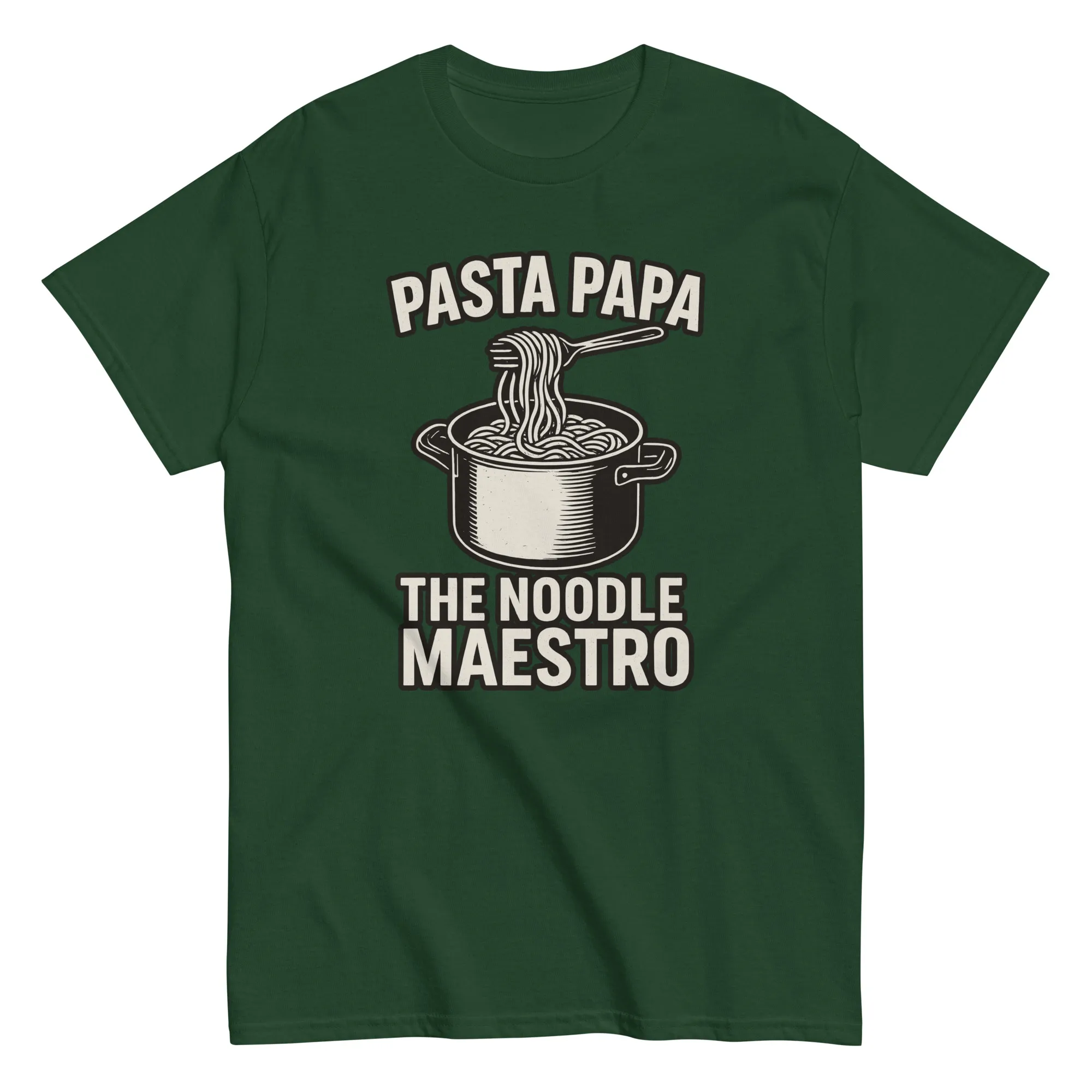 Every familys got a pasta guy, and lets be honestits you. This Pasta Papa: The Noodle Maestro shirt celebrates the dad who can turn boiling water into a standing ovation and make spaghetti night feel like Sunday in Sicily. Crafted from premium cotton, its perfect for cooking, carb-loading, or yelling al dente like its a life philosophy. Limited batchgrab yours before someone else claims the ladle.