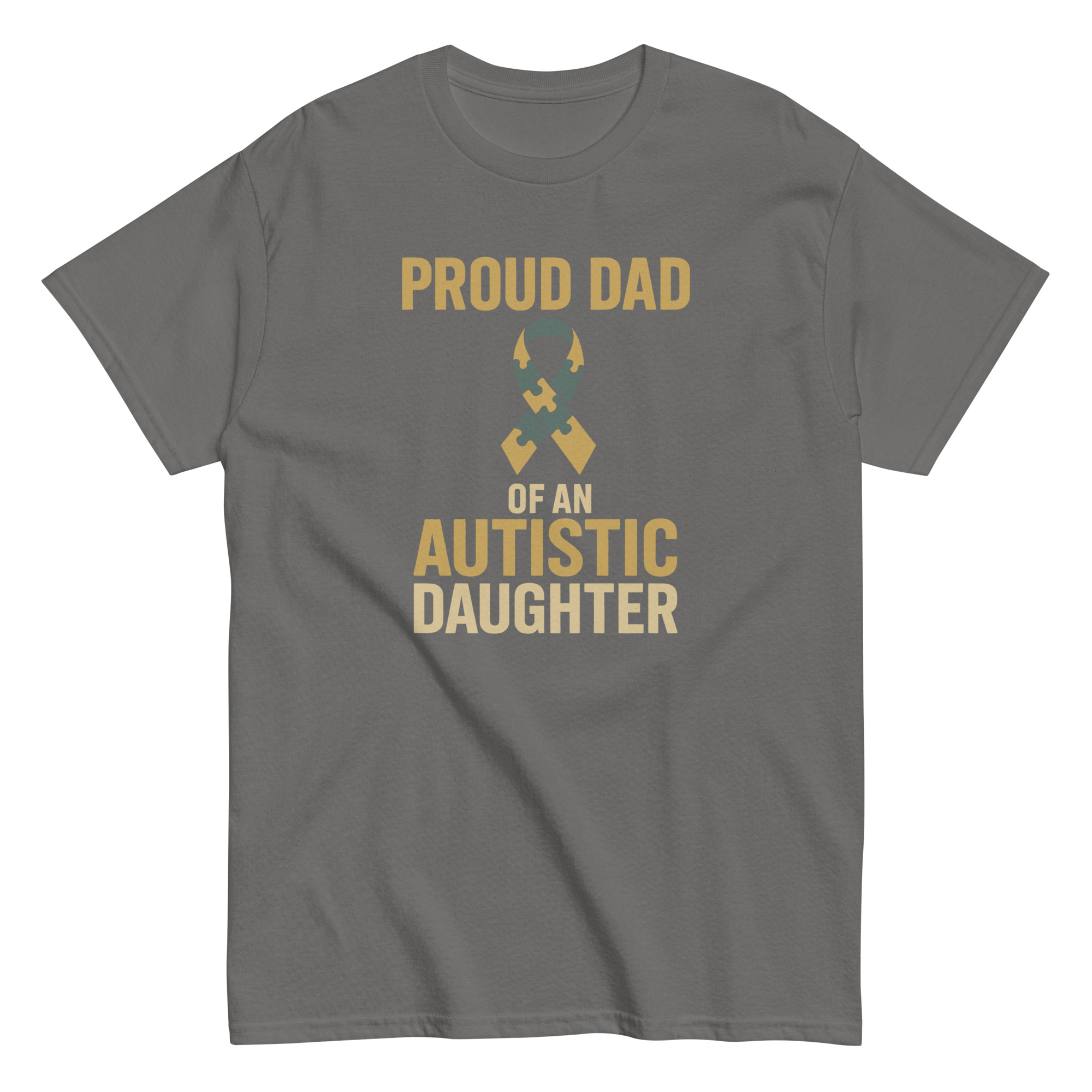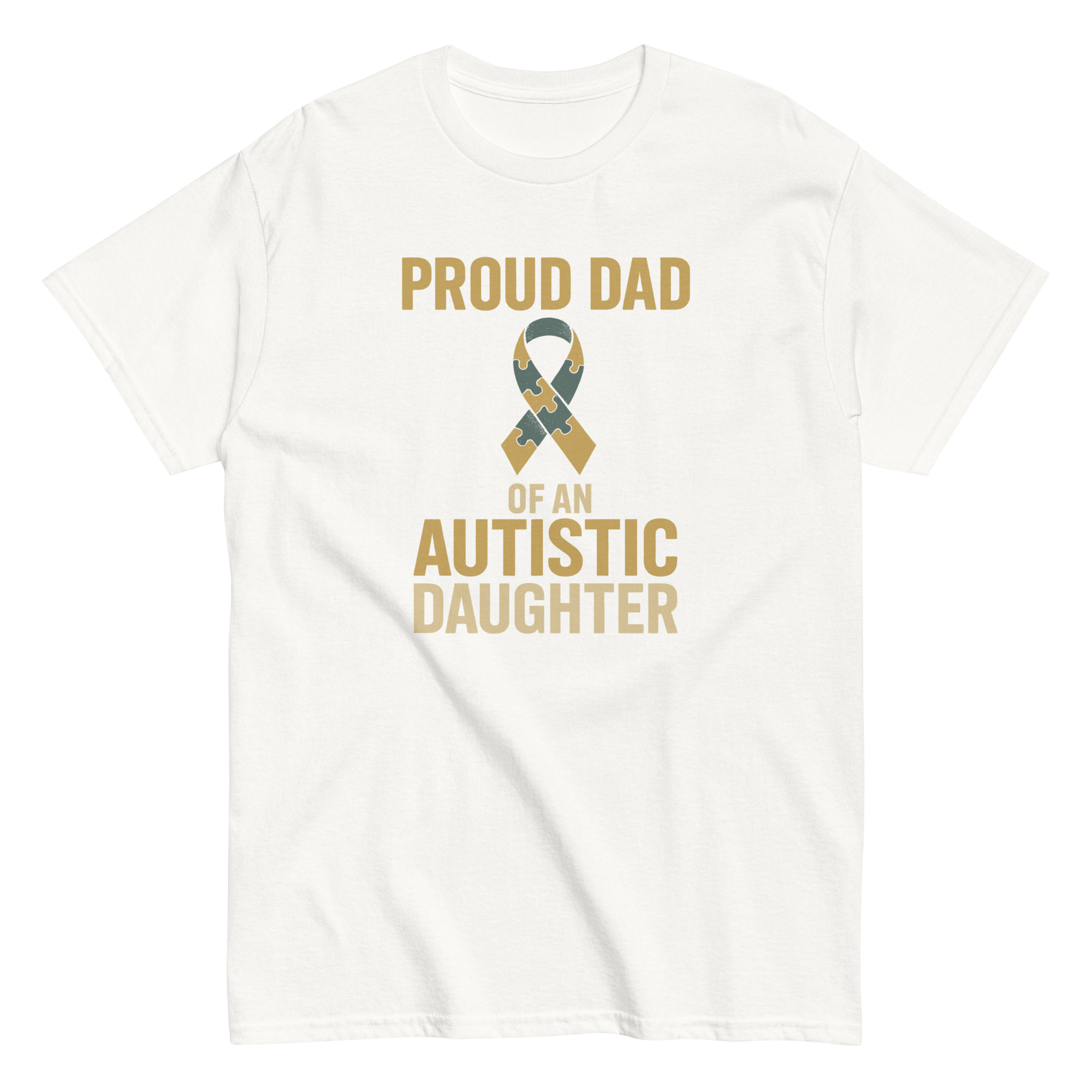 This shirt is for the father who knows love doesn’t need translations it’s lived every day. Raising an autistic daughter comes with unique challenges, but it also comes with unmatched joy, strength, and pride. With bold lettering and the puzzle ribbon front and center, this tee is more than apparel it’s a declaration of love, resilience, and unapologetic pride.