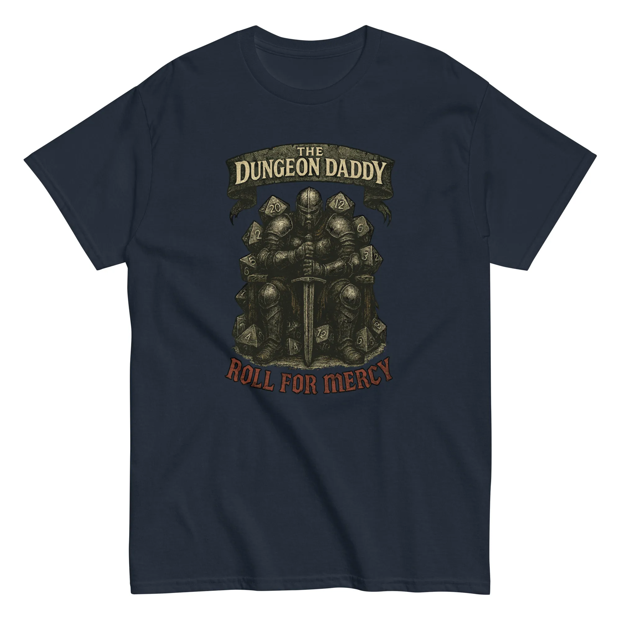 Every house has a boss. In yours, it just happens to be a grizzled Dungeon Daddy in full plate armor. This shirt is for the dad who commands campaigns, slays dragons, and still finds time to mow the lawn. Built from premium cotton, it’s perfect for game nights, backyard grilling, or scaring off would-be suitors with a critical glare. Stock is limited—so roll high on initiative before this legendary loot disappears.