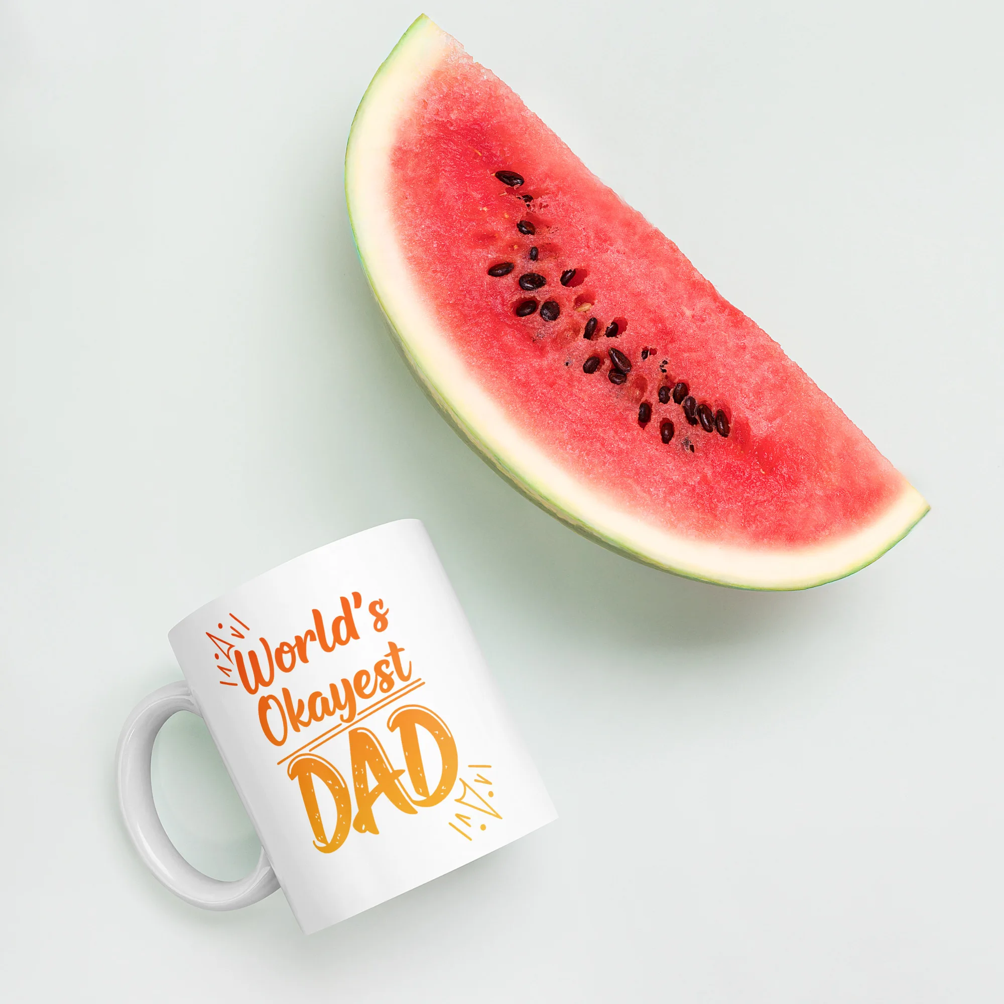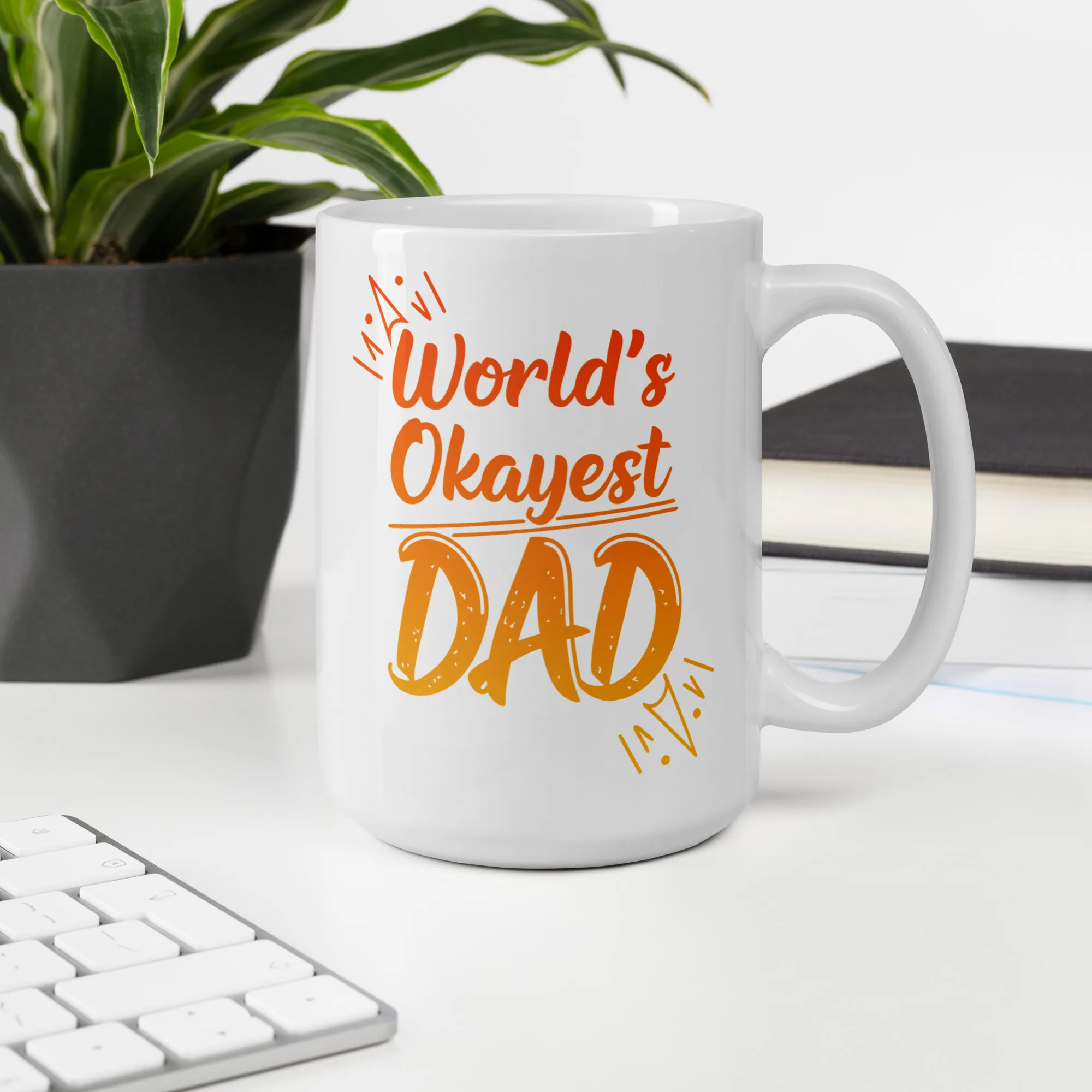 A funny dad mug for the legend of low effort. Great for coffee, eye rolls, and reminding him that “okayest” is still better than nothing.