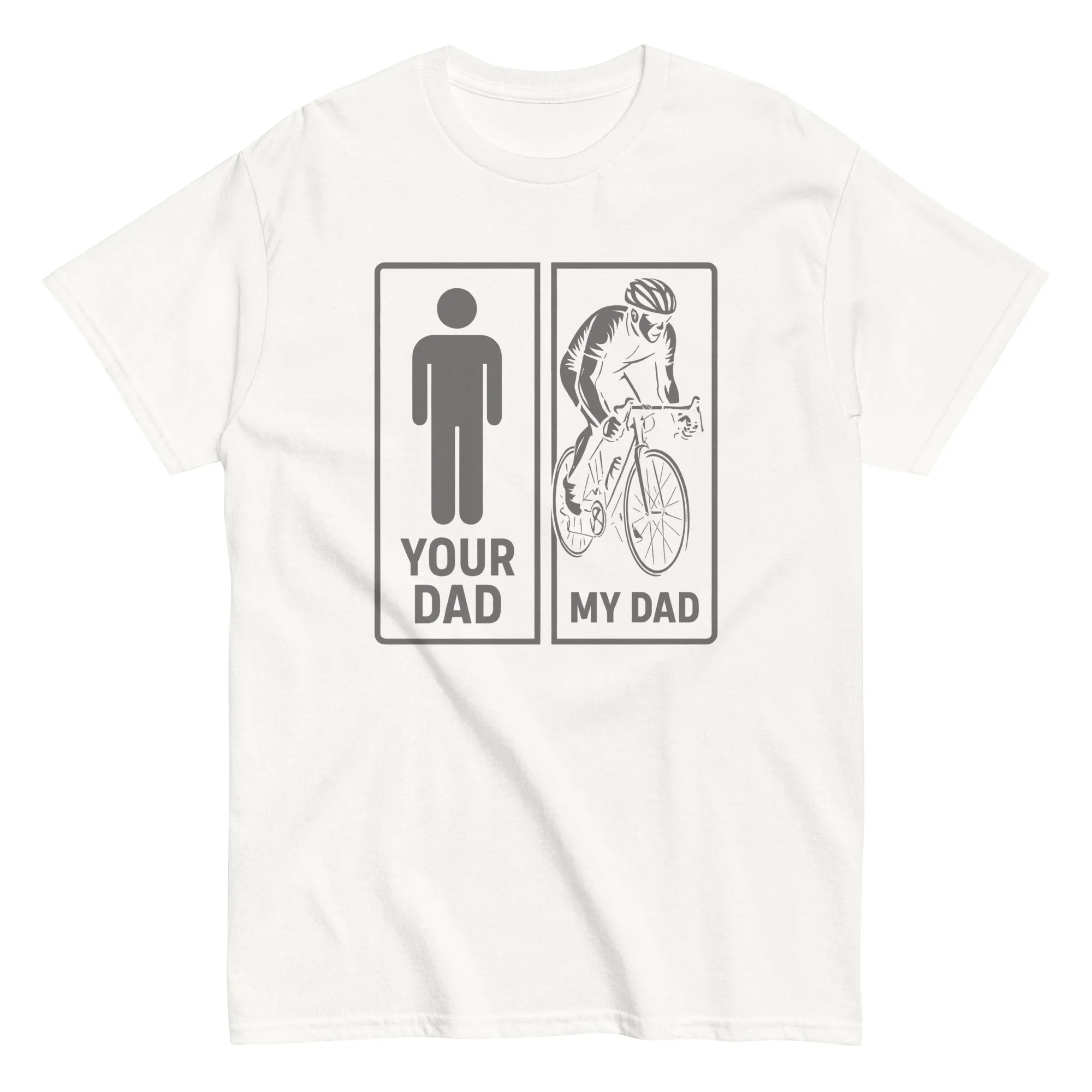 This shirt says what you’re too humble to admit out loud: your dad doesn’t just exist, he dominates. Perfect for the cycling tribe that treats Saturday mornings like the Tour de France (but with more coffee stops). Soft enough for couch recovery, bold enough to trash-talk your neighbor’s “power walking.” Forget neckties, this is the gift that actually wins respect. Grab it before your kid claims bragging rights and swipes it for themselves.